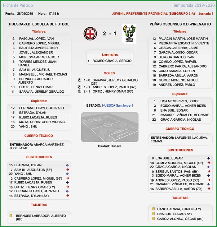 Fuente de los datos de la Ficha Técnica: Federación Aragonesa de Fútbol.