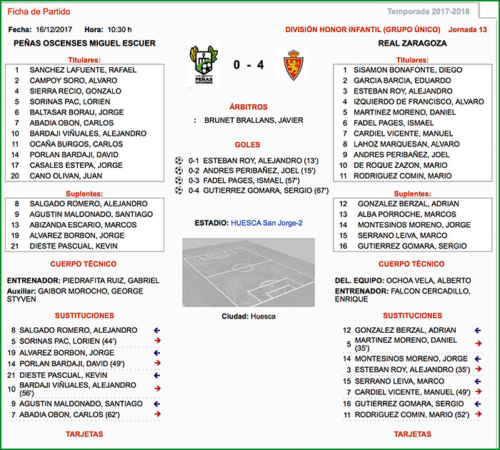 Fuente de los datos de la Ficha Técnica: Federación Aragonesa de Fútbol.