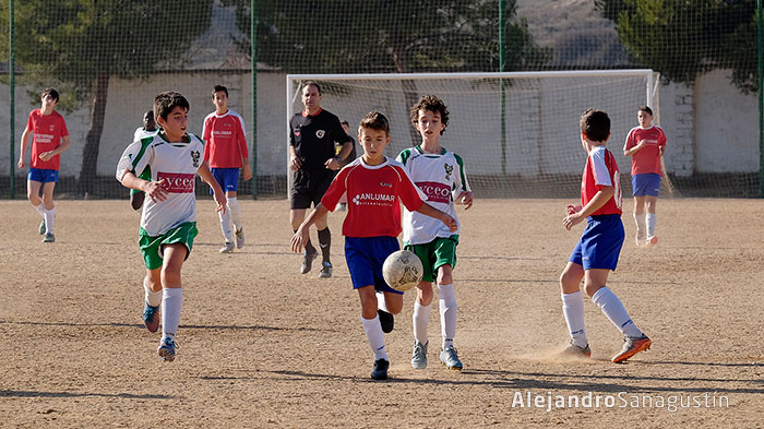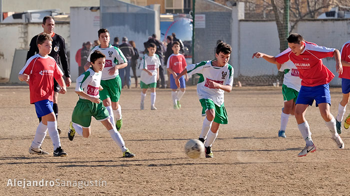 Comenzaba la mañana en el campo de la Universidad, allí el derbi infantil entre la S.D. Huesca y el Peñas-MIGUEL ESCUER.