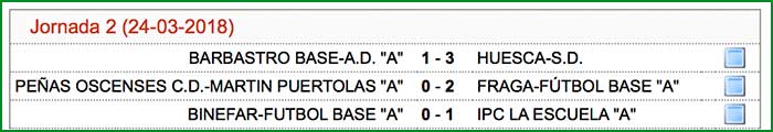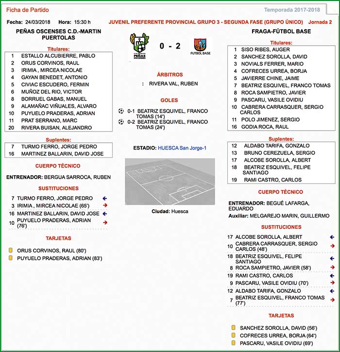 Encuentro correspondiente a la jornada 2 de la fase de ascenso juvenil, celebrado el día 24 de marzo de 2018 en Huesca San Jorge-1, a las 15:30 horas.