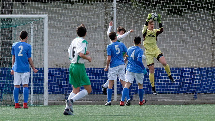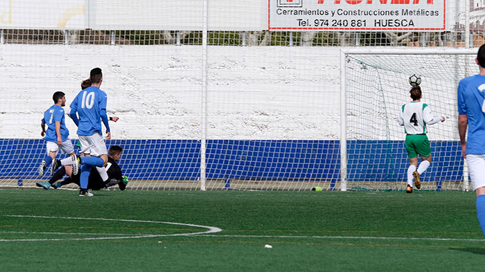 Llegó la primera ocasión del encuentro de manos de Adrián Puyuelo tras un buen centro, sin embargo, el remate se marchó por encima del larguero y el marcador se mantuvo a gafas.