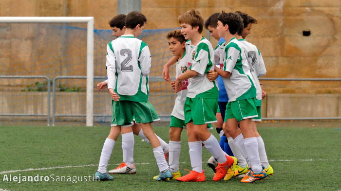 Partido serio del Peñas Oscenses infantil B “Academia Lyceo” que comenzaba con las ideas claras, mantener la posesión del balón sin prisa en acercarse al área rival.