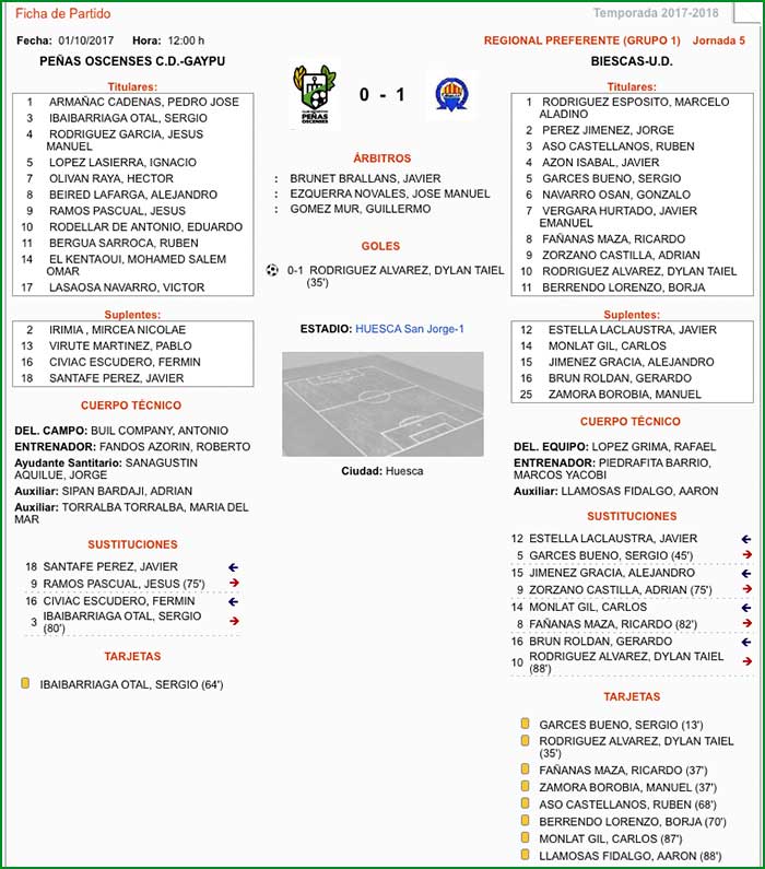 Fuente de los datos de la Ficha Técnica: Federación Aragonesa de Fútbol.