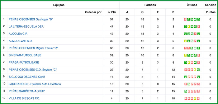 Con 54 puntos ya no puede ser alcanzado por la Escuela Deportiva La Litera que marcha en segunda posición con 47 puntos.