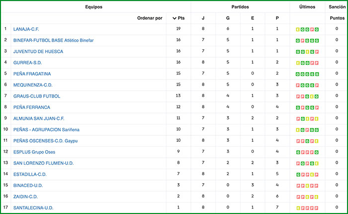 Fuente de los datos de la Ficha Técnica: Real Federación Aragonesa de Fútbol.