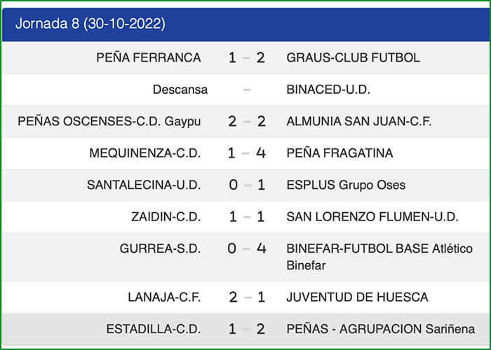 Encuentro correspondiente a la jornada 8 de liga celebrado el día 30 de octubre de 2022 a las 17:30 horas en el campo 1 del C.M.F. San Jorge de Huesca.