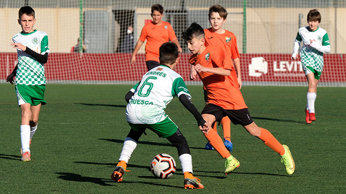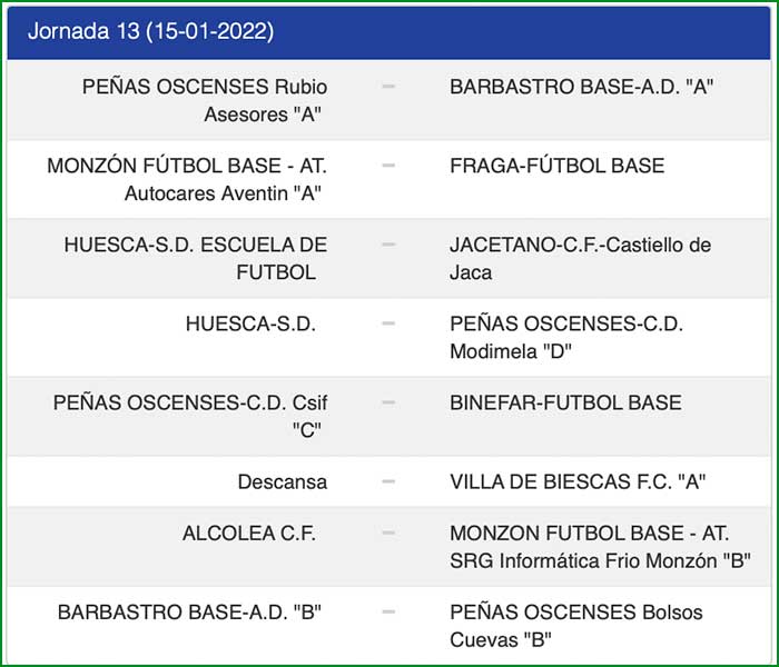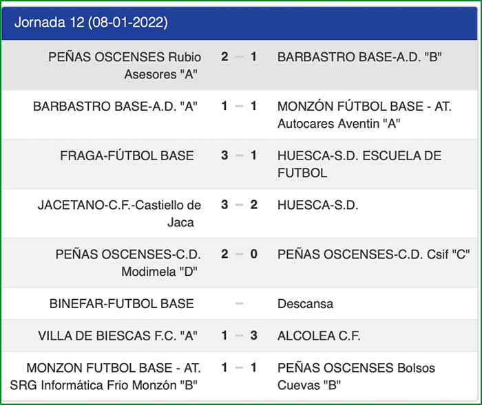 Encuentro correspondiente a la jornada 12 de liga celebrado el día 8 de enero de 2022 a las 14:30 horas en el campo 2 del C.M.F. San Jorge de Huesca. Tarde desapacible con viento y frío.