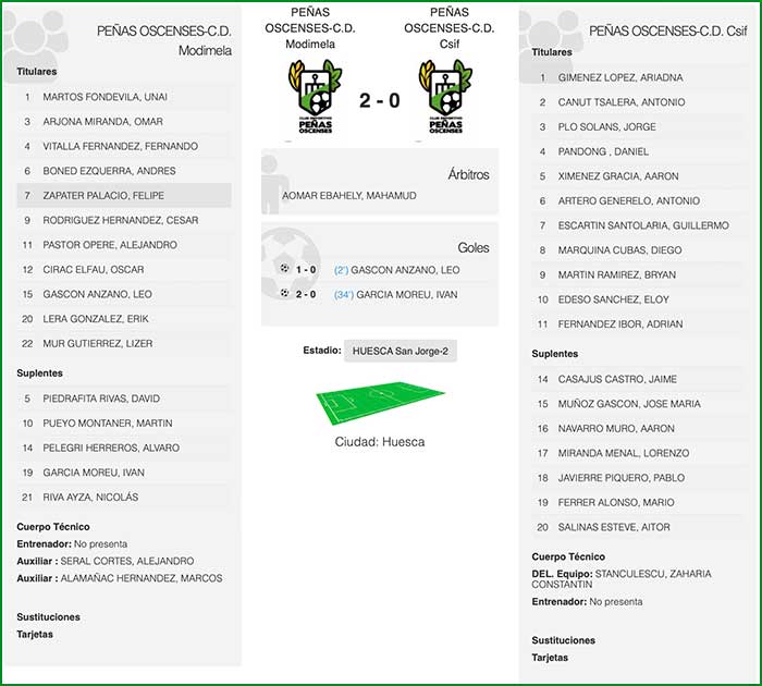 C.D. Peñas Oscenses D-MODIMELA |2 – 0| C.D. Peñas Oscenses C- CSIF