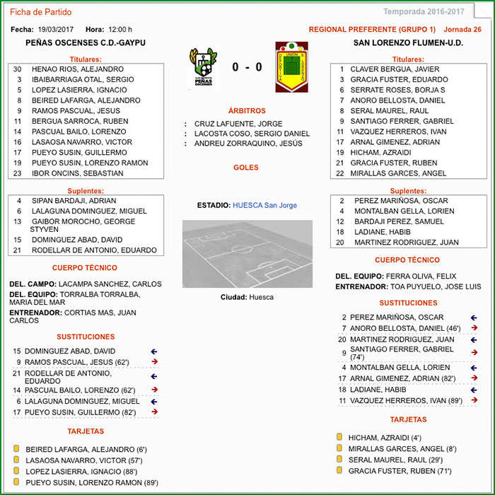 Fuente de los datos de la Ficha Técnica: Federación Aragonesa de Fútbol.