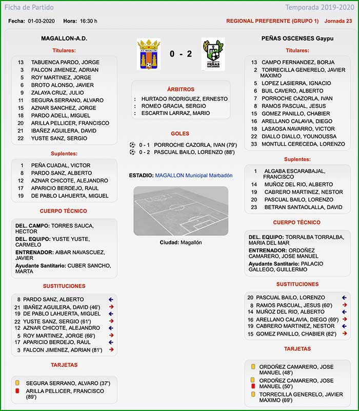 Fuente de los datos de la Ficha Técnica: Federación Aragonesa de Fútbol.