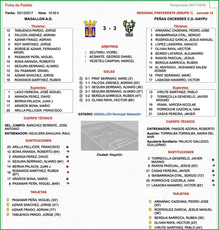 Fuente de los datos de la Ficha Técnica: Federación Aragonesa de Fútbol.