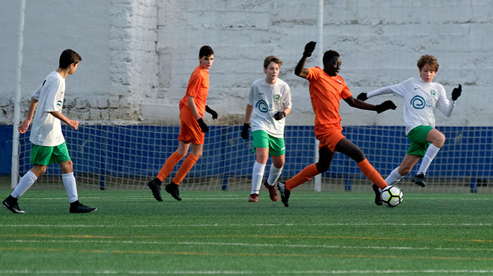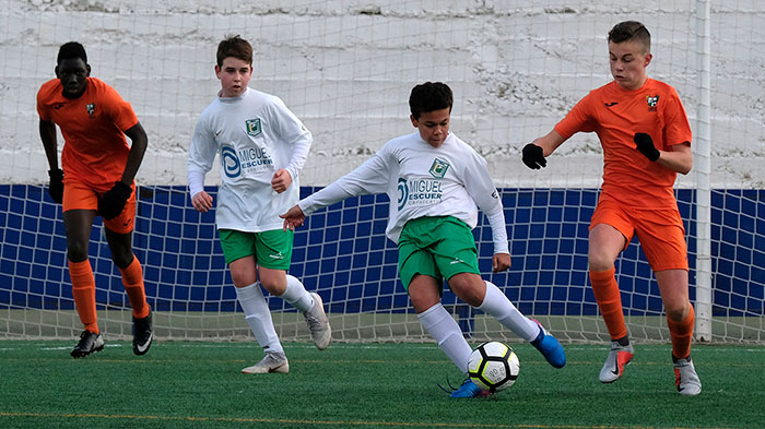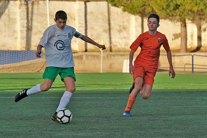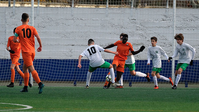 El Cadete A movía bien el balón de lado a lado, intentando entrar por bandas.