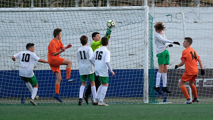 A balón parado llegó el primer gol del Cadete A en un despiste defensivo de la zaga del Cadete D.