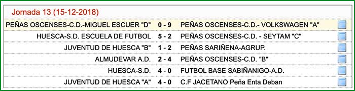 Encuentro correspondiente a la jornada 13 de liga, celebrado día 15 de diciembre de 2018, a las 9 horas en el campo 1 del C.M.F. San Jorge de Huesca.