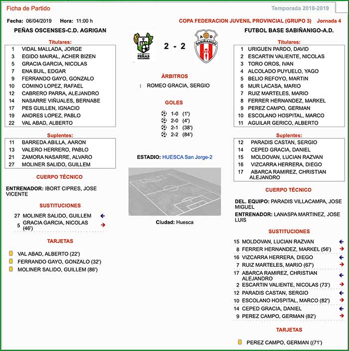 Fuente de los datos de la Ficha Técnica: Federación Aragonesa de Fútbol.