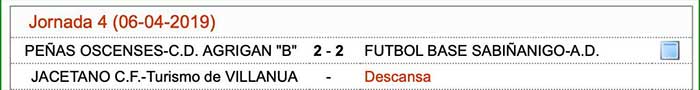 Encuentro correspondiente a la jornada 4, celebrado el día 6 de abril de 2019 a las 11 horas en el campo 2 del C.M.F. San Jorge de Huesca.