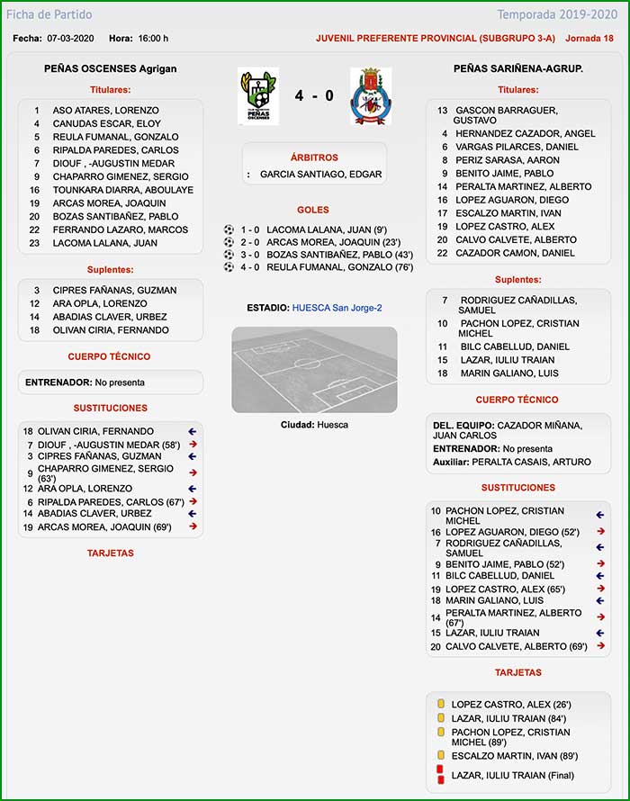 Fuente de los datos de la Ficha Técnica: Federación Aragonesa de Fútbol.