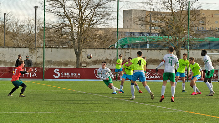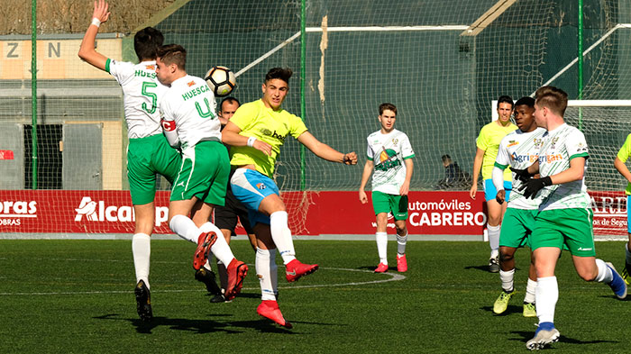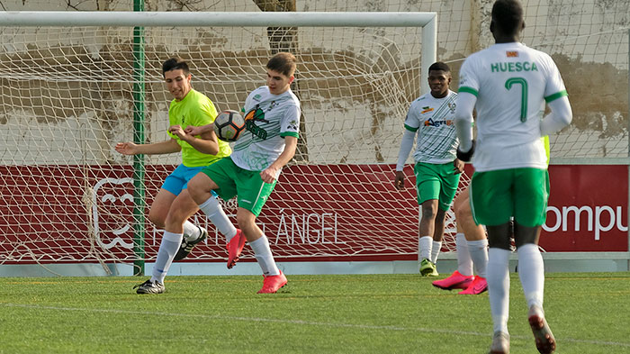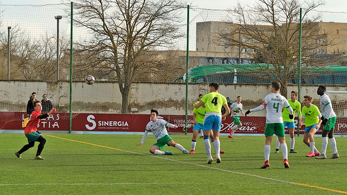 Encuentro correspondiente a la última jornada de liga en la primera fase, celebrado el día 7 de marzo de 2020, a las 16 horas en el campo 2 del C.M.F. San Jorge de Huesca. Fuerte viento y frío durante todo el encuentro.