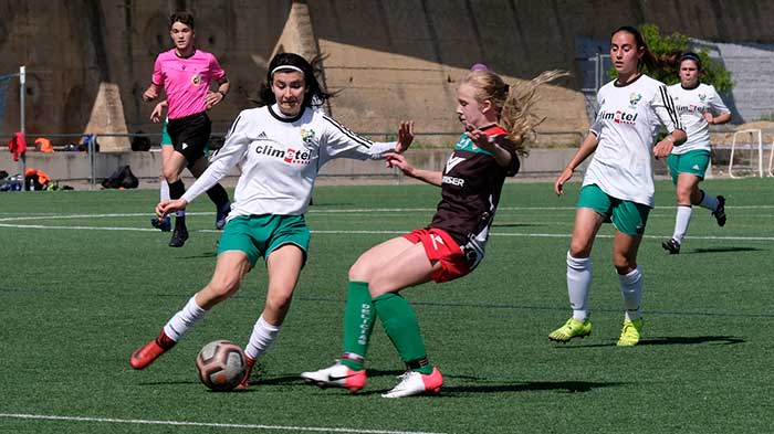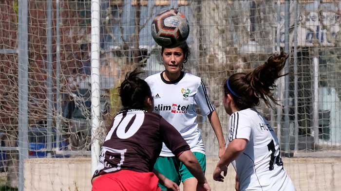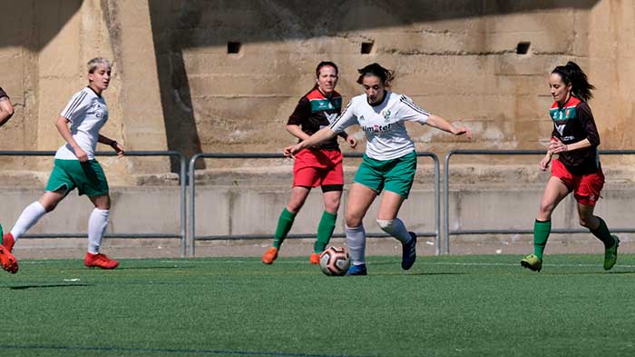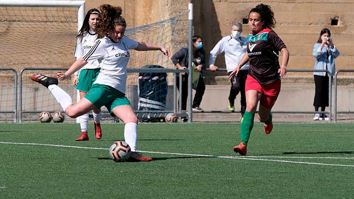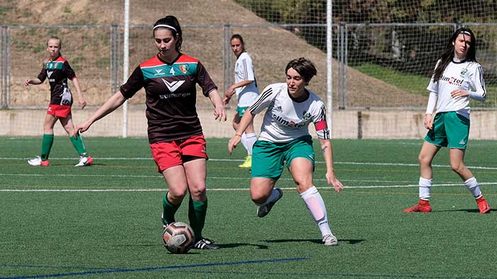 Las peñistas luchaban por todos los balones y buscaban sobre todo por la banda izquierda las entradas de Cristina Nasarre.