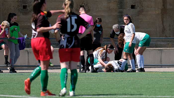 Reseñar que Cristina López una de las cuatro goleadoras de la mañana cae lesionada minutos antes de finalizar el encuentro, por lo que el equipo peñista juega con diez hasta el final.