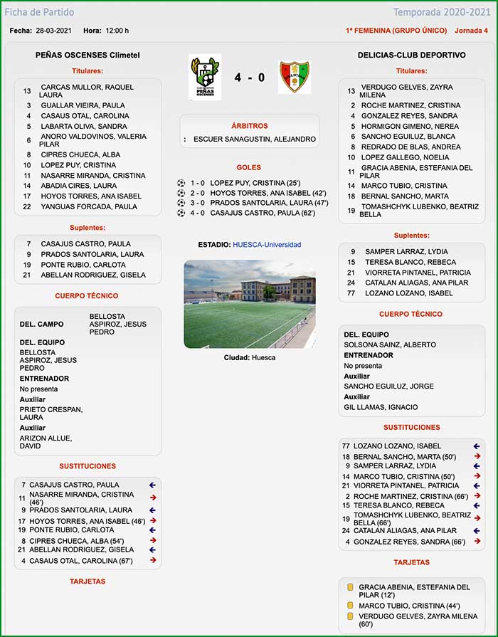 Encuentro correspondiente a la jornada 4 de liga, celebrado el día 28 de marzo de 2021 a las 12 horas en el campo de la Universidad en Huesca.