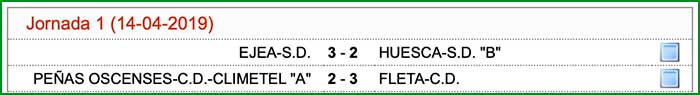 Encuentro correspondiente a la jornada 1 de la Copa de Aragón, celebrado el día 14 de abril de 2019, a las 11 horas en el campo 1 del C.M.F. San Jorge de Huesca.