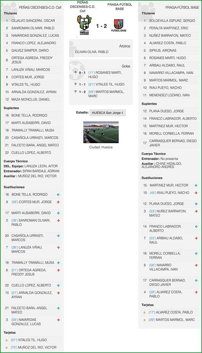 C.D. Peñas Oscenses-CSIF |1 – 2| Fraga F.B.