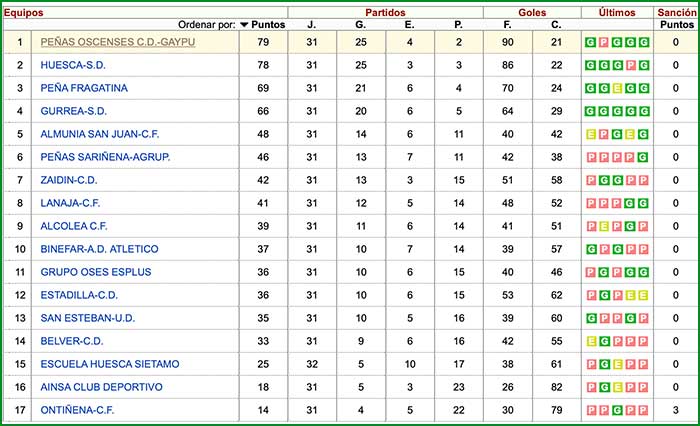 Fuente de los datos de la Ficha Técnica: Federación Aragonesa de Fútbol.
