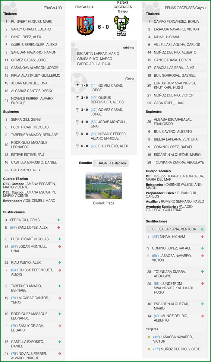 U.D. Fraga |6 – 0| C.D. Peñas Oscenses-GAYPU