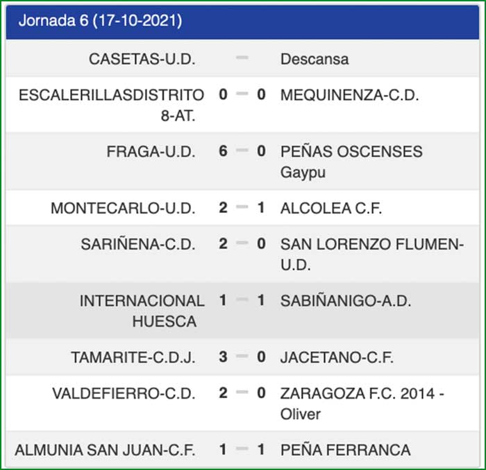 Encuentro correspondiente a la jornada 6 celebrado el día 17 de octubre de 2021 a las 17:30 horas en La Estacada de Fraga.