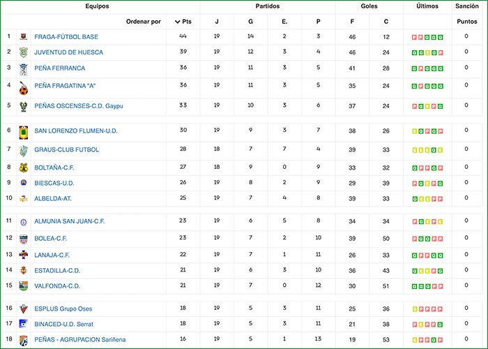 Fuente de los datos de la Ficha Técnica: Real Federación Aragonesa de Fútbol.
