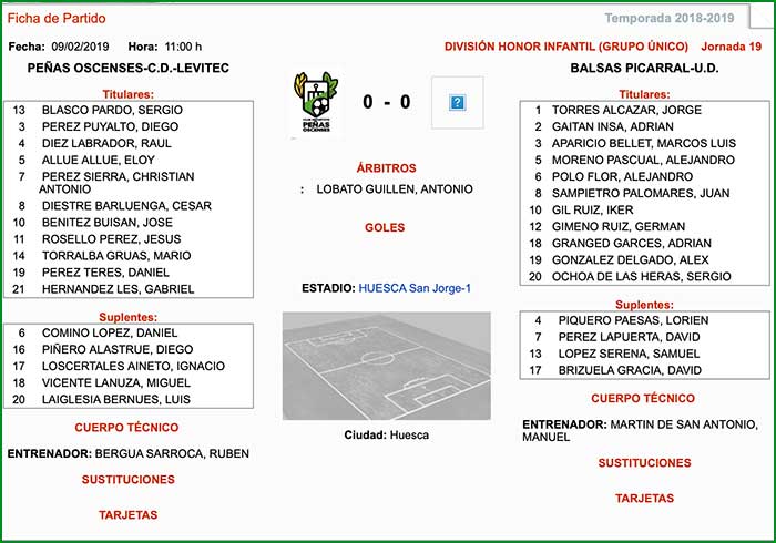 Fuente de datos de la Ficha Técnica: Federación Aragonesa de Fútbol.