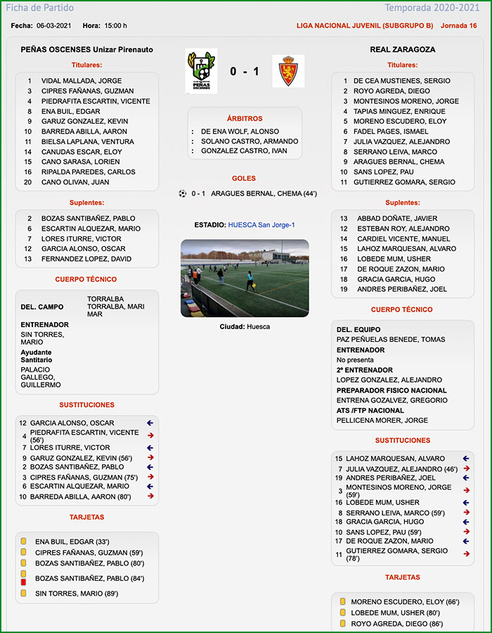 Fuente de los datos de la Ficha Técnica: Federación Aragonesa de Fútbol.