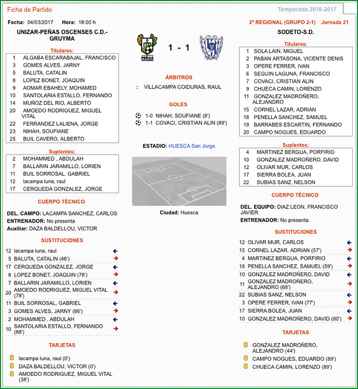 UNIZAR-C.D. Peñas Oscenses-GRUYMA |1 – 1| S.D. Sodeto
