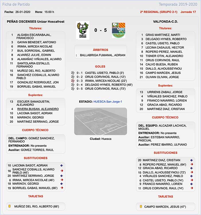 Fuente de los datos de la Ficha Técnica: Federación Aragonesa de Fútbol.
