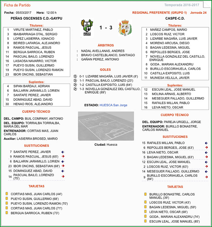 Fuente de los datos de la Ficha Técnica: Federación Aragonesa de Fútbol.