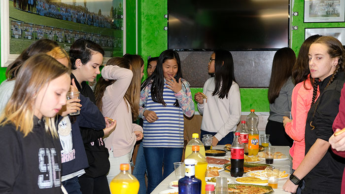 En un ambiente distendido las chicas, juntos a los entrenadores, delegados, auxiliares, directivos y presidente se reunían en el local social.