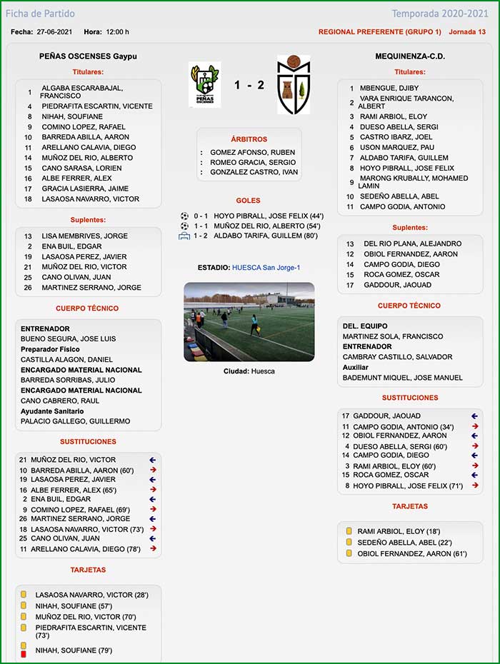Fuente de los datos de la Ficha Técnica: Federación Aragonesa de Fútbol.