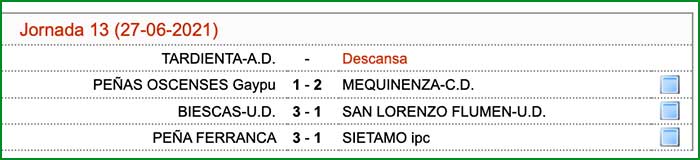 Encuentro correspondiente a la jornada 13 de liga celebrado el día 27 de junio de 2021, a las 12 horas en el campo 1 del C.M.F. San Jorge de Huesca.