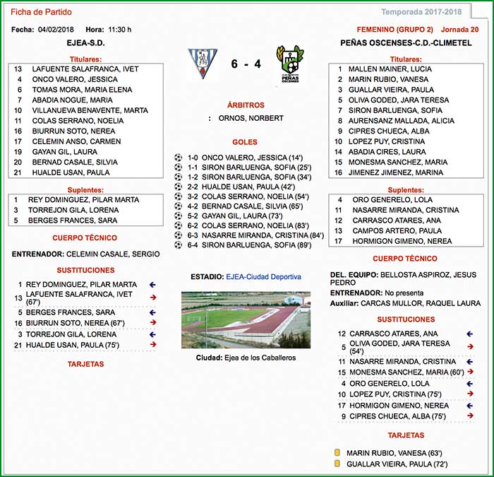 Encuentro correspondiente a la jornada 20 de liga celebrado el día 4 de febrero de 2018, a las 11:30 horas en la Ciudad Deportiva de Ejea.