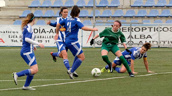 El comienzo de la segunda parte las de Ejea vuelven a dominar, aunque la primera ocasión de gol fue para las peñistas, pero sin acierto en el remate.