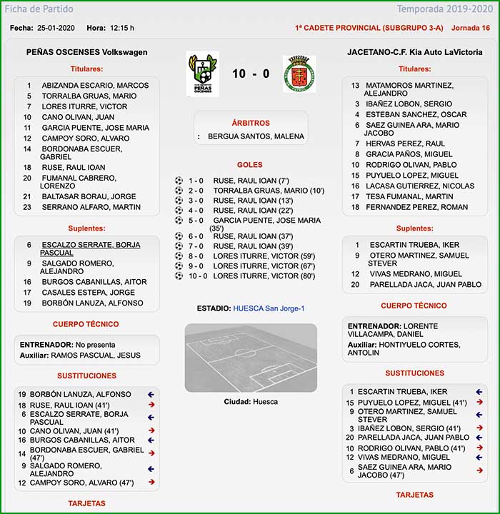 C.D. Peñas Oscenses-VOLKSWAGEN |10 – 0| Jacetano C.F. B