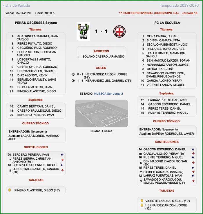 C.D. Peñas Oscenses-SEYTAM |1 – 1| IPC La Escuela