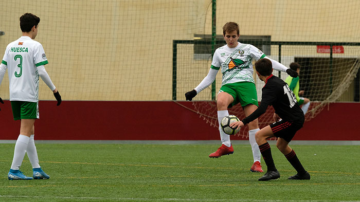Sobre el campo 1 del C.M.F. San Jorge a las 12:15 horas se disputaba el partido entre el Peñas-VOLKSWAGEN y el Jacetano C.F. B.