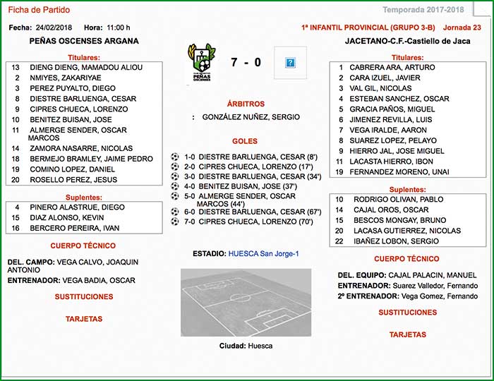 Fuente de los datos de la Ficha Técnica: Federación Aragonesa de Fútbol.