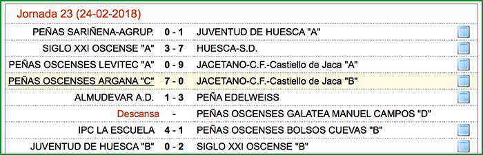 Encuentro correspondiente a la jornada 23 de liga celebrado el día 24 de febrero de 2018, a las 11 horas en el campo 1 del C.M.F. San Jorge de Huesca.