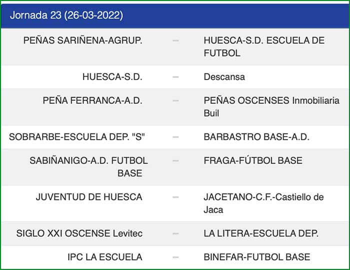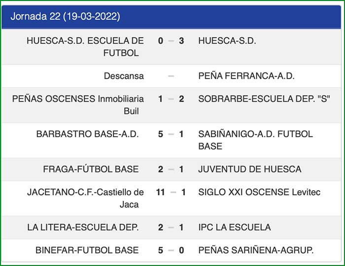 Encuentro correspondiente a la jornada 22 de liga celebrado el día 19 de marzo de 2022 a las 15:45 horas en el campo 2 del C.M.F. San Jorge de Huesca.