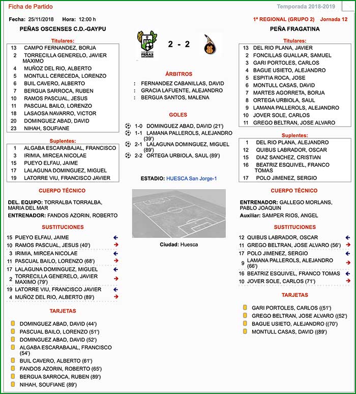 Fuente de los datos de la Ficha Técnica: Federación Aragonesa de Fútbol.
