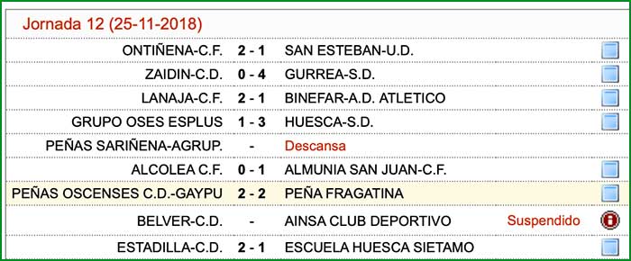 Encuentro correspondiente a la jornada 12 de liga, celebrado el día 25 de noviembre de 2018 a las 12 horas en el C.M.F. San Jorge de Huesca.