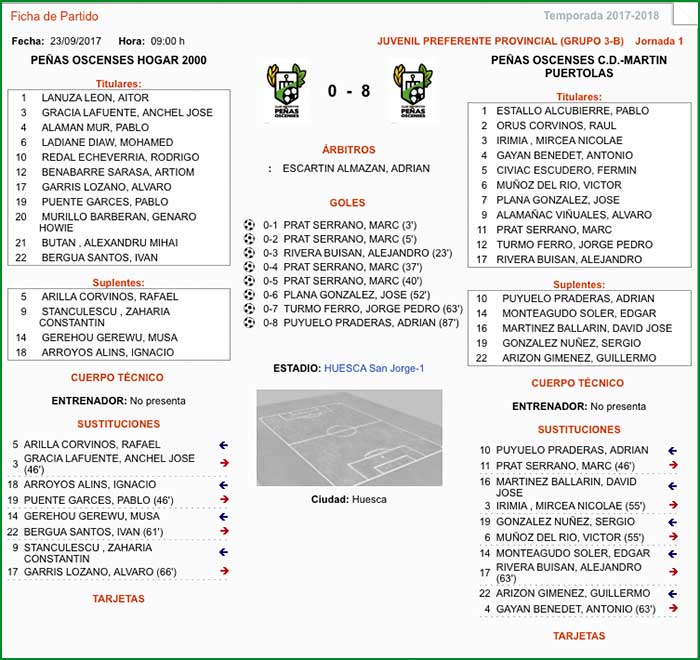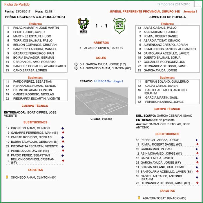 Ficha Técnica del partido Juvenil C contra el Juventud Huesca A: